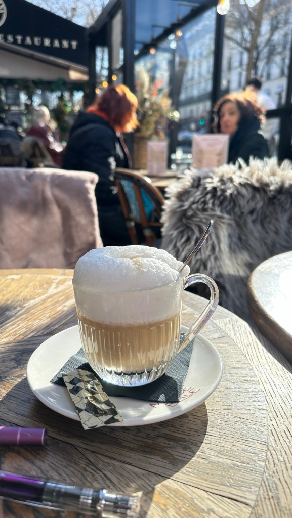 I’m in my favorite place, having my classic cappuccino, which is funny because I only started drinking them recently and I’m not entirely sure what inspired the change from my previously classic “allonge”.